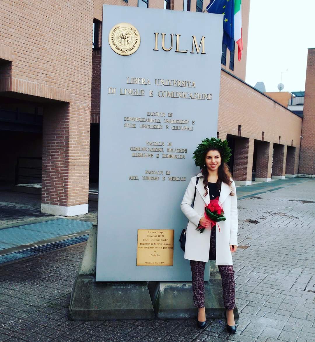 J’ai choisi de participer au programme consacré au double-diplôme franco-italien IULM-UHA pour avoir l’opportunité de mettre à l’épreuve, comparer et affiner mes compétences dans le champ de la traduction et l’interprétation dans un cadre académique autre que celui italien, et pouvoir concilier la vie étudiante avec ma passion pour les voyages. Ce programme a été d’un grand apport dans ma vie personnelle, sociale, académique et professionnelle. La vaste gamme d’enseignements proposés sont à la fois spécifiques et efficaces. Pour finir, j’ai non seulement eu l’occasion d’expérimenter concrètement chaque aspect des métiers de la traduction, mais j’ai également profité d’une expérience très multiculturelle. Grâce au bon nombre d’étudiants, l’accueil a été magnifique, j’ai été placée dans un logement qui répondait à toutes mes exigences et j’ai participé avec enthousiasme à toutes les excursions et les activités extracurriculaires proposées par l’université. Une très belle expérience.