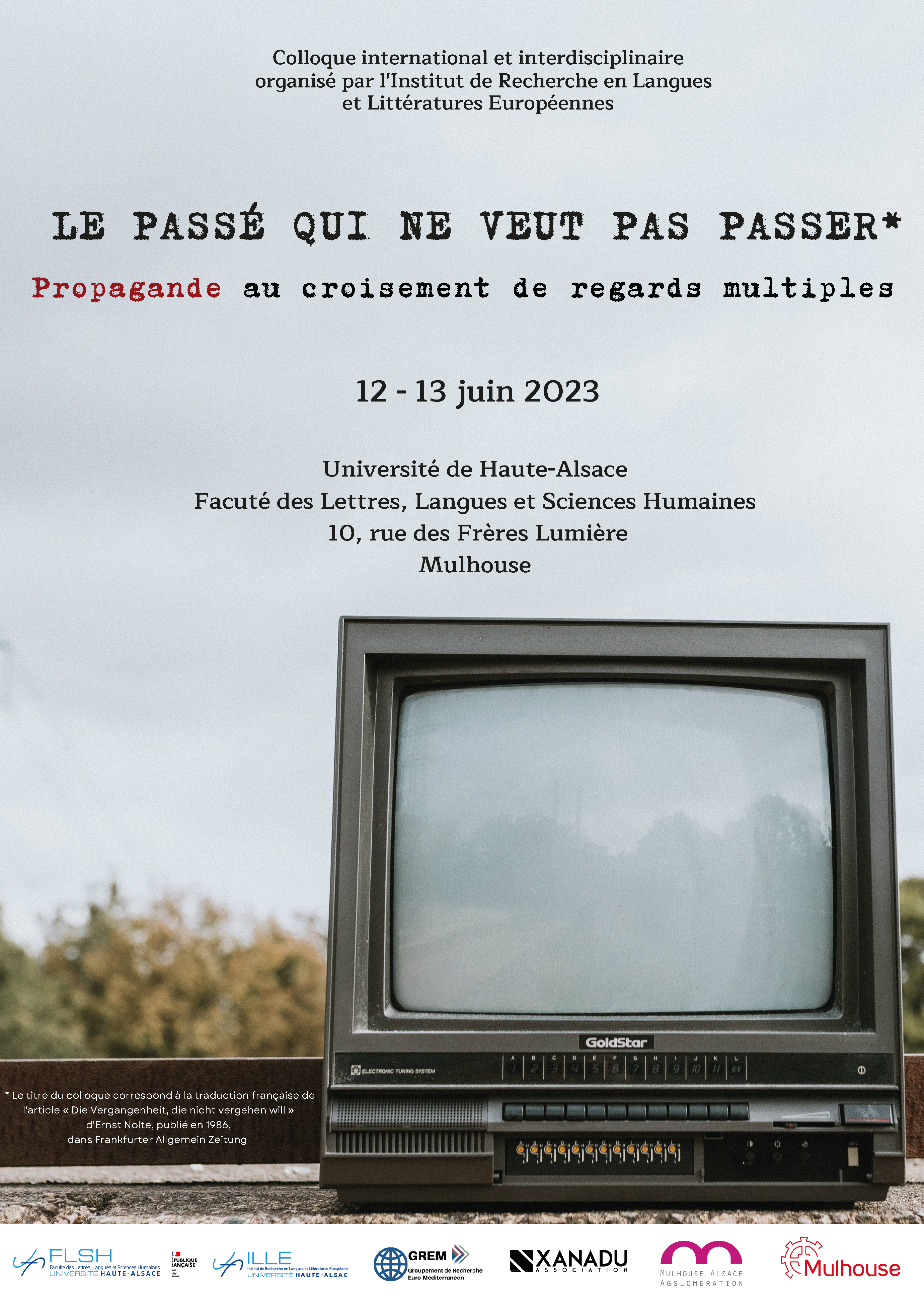 Colloque international et interdisciplinaire «Le passé qui ne veut pas passer: Propagande aux croisements de regards multiples» + Ajouter à mon Agenda Google + iCal / Outlook export Date 12 - 13 Juin 2023 Expired! Heure 8 h 30 min - 18 h 00 min Heure Locale Fuseau Horaire : America/New_York Date : 12 - 13 Juin 2023 Heure : 2 h 30 min - 12 h 00 min Lieu FLSH - Salle Gandjavi 10, Rue des Frères Lumière 68093 MULHOUSE Catégorie Colloque Partagez cet événement