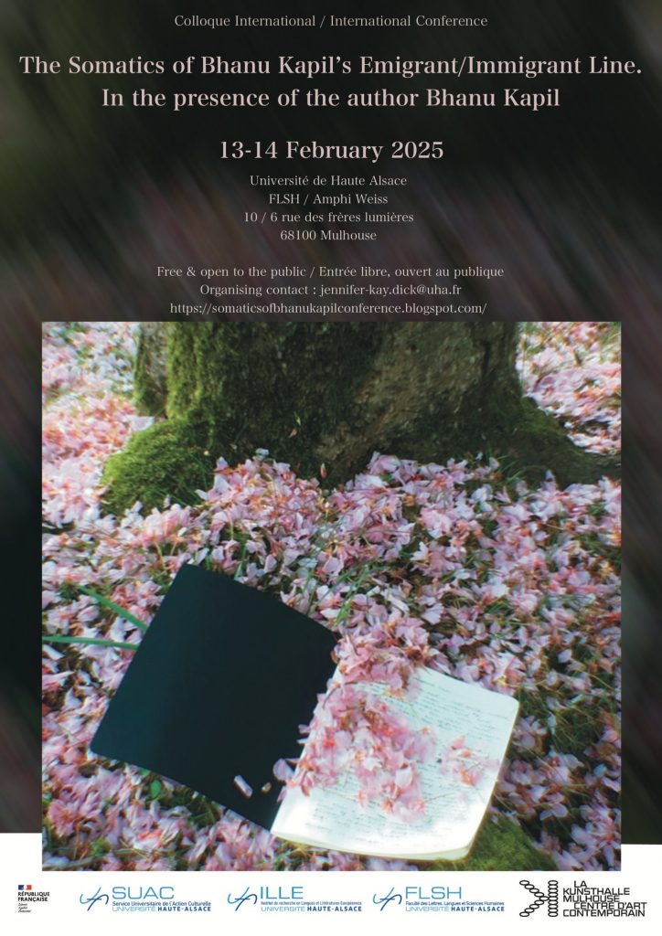 Journée d’étude “The Somatics of Bhanu Kapil’s Emigrant/Immigrant Line” Consulter l’affiche de la Journée d’étude : Consulter le programme : Programme_Journee_etudes_BHANU_KAPIL_13-14fevrier2025Télécharger + Ajouter à mon Agenda Google + iCal / Outlook export Date 14 Fév 2025 Expired! Heure 8 h 30 min - 20 h 00 min Heure Locale Fuseau Horaire : America/New_York Date : 14 Fév 2025 Heure : 2 h 30 min - 14 h 00 min Plus d'Infos Blog du colloque Lieu Amphithéâtre Weiss 6, rue des Frères Lumière 68093 Mulhouse cedex Catégorie Journée d'étude Organisateur Département Anglais Blog du colloque Partagez cet événement