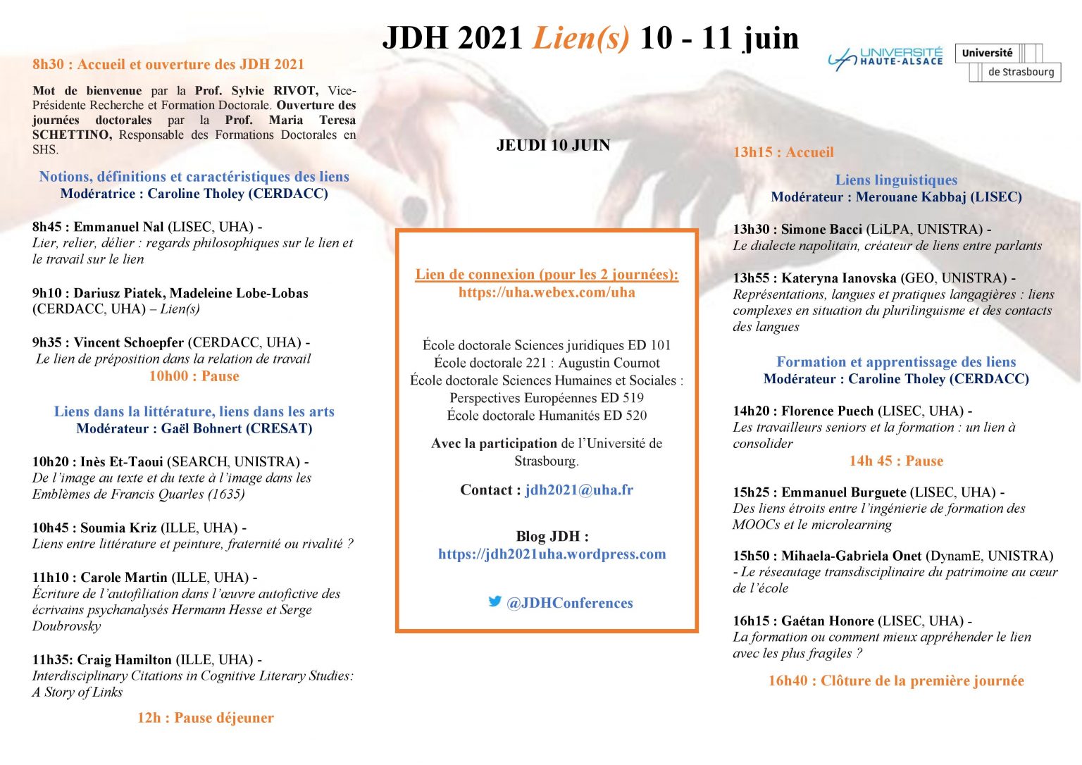 Journées doctorales des Humanités 2021 + Ajouter à mon Agenda Google + iCal / Outlook export Date 10 - 11 Juin 2021 Expired! Heure 8 h 30 min Heure Locale Fuseau Horaire : America/New_York Date : 10 - 11 Juin 2021 Heure : 2 h 30 min Lieu En visioconférence Catégorie Séminaire Partagez cet événement