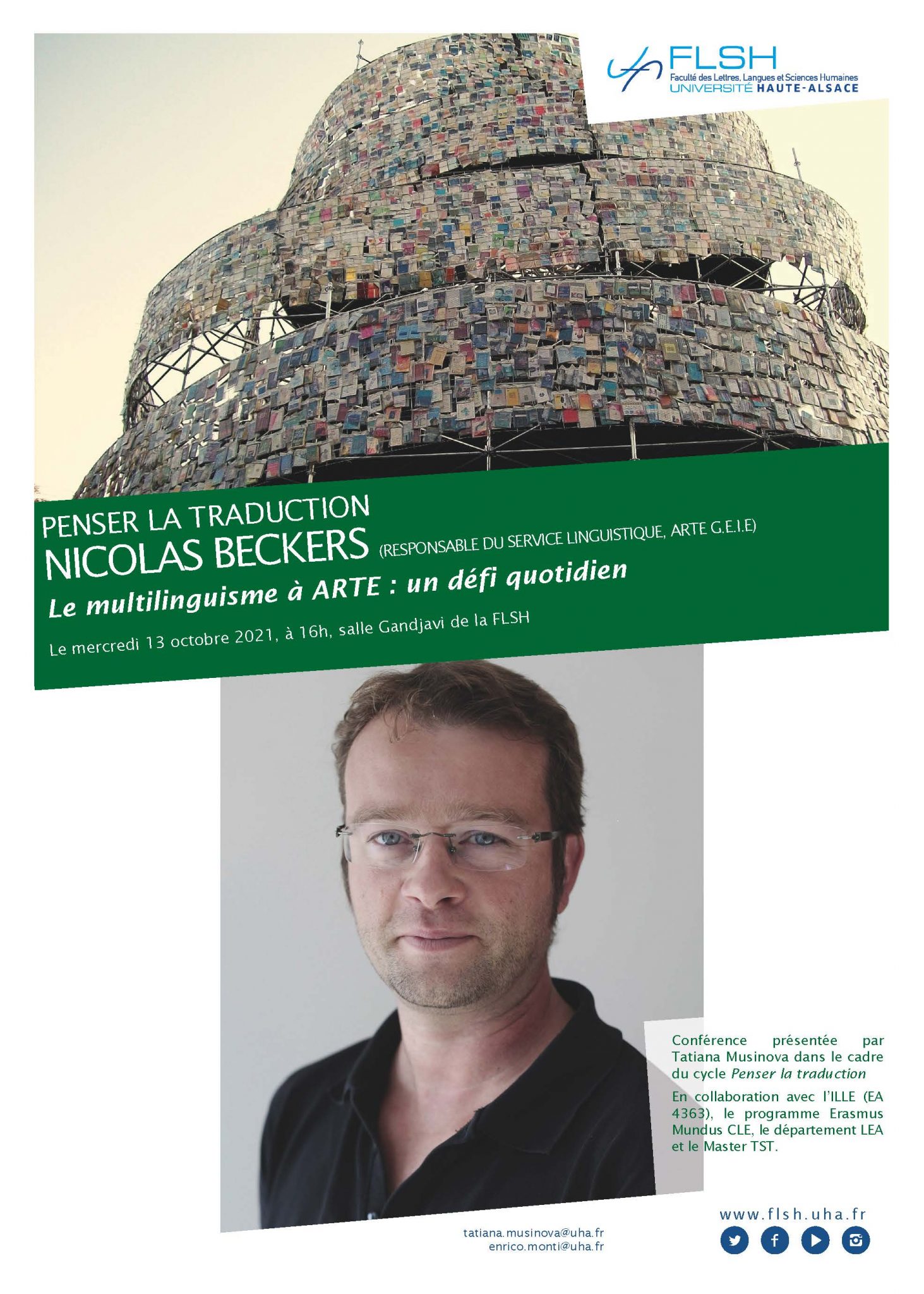 Nicolas BECKERS, « Le multilinguisme à arte : un défi quotidien » + Ajouter à mon Agenda Google + iCal / Outlook export Date 13 Oct 2021 Expired! Heure 16 h 00 min Heure Locale Fuseau Horaire : America/New_York Date : 13 Oct 2021 Heure : 10 h 00 min Lieu FLSH - Salle Gandjavi 10, Rue des Frères Lumière 68093 MULHOUSE Organisateur Laboratoire ILLE Site Web http://www.ille.uha.fr/ Partagez cet événement