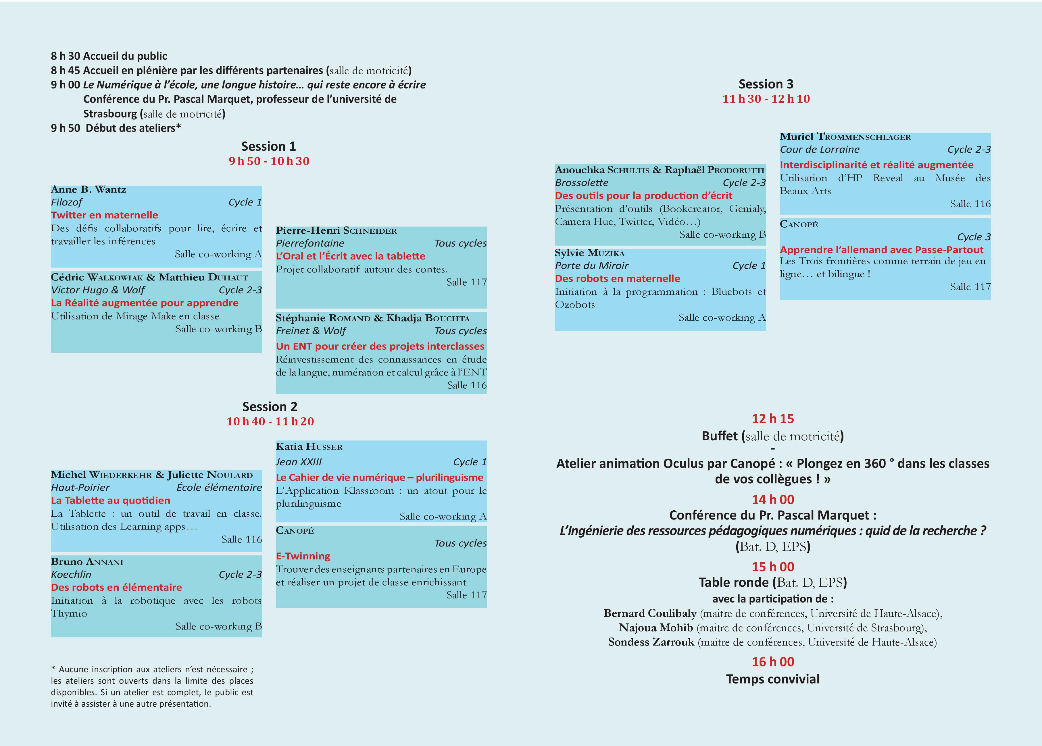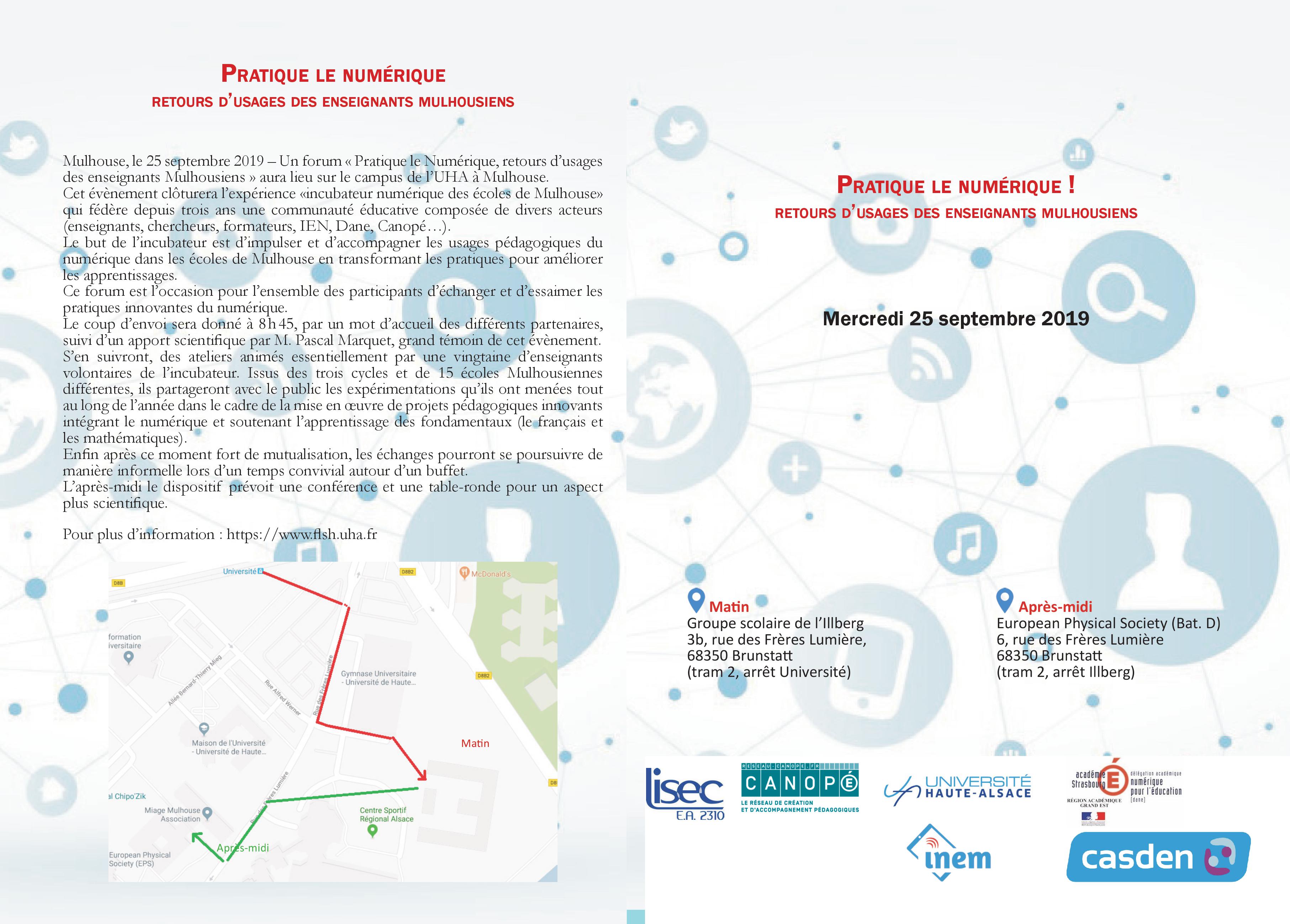 Ce forum, organisé par le laboratoire LISEC, clôt l’expérience « Incubateur numérique des écoles de Mulhouse » qui fédère depuis trois ans une communauté composée de divers acteurs : enseignants, chercheurs, formateurs, IEN, Canopée, Dane…